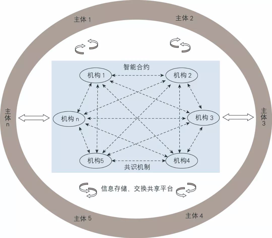 再次,区块链的共识机制要求各主体之间遵守共同协议并履行义务,共同管理和协调整个网络体系,共同维护和监督数据的安全,自发协调地形成有序的自组织网络,政府的角色和作用也从最初的领导者变为积极的协调者和参与者。