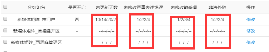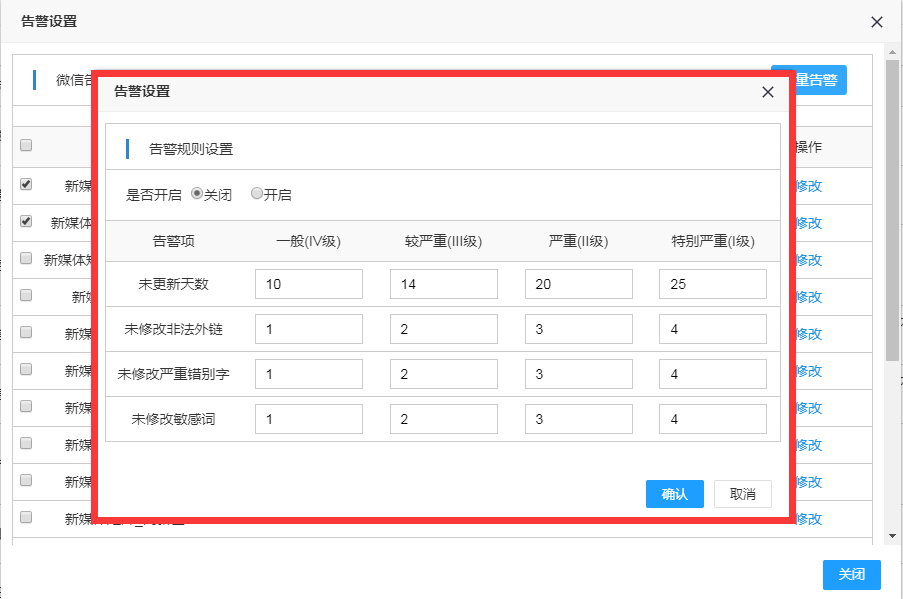 注:系统仅支持对“新媒体矩阵_”分组的新媒体设置告警阈值,非“新媒体矩阵_”的分组无法设置阈值。
