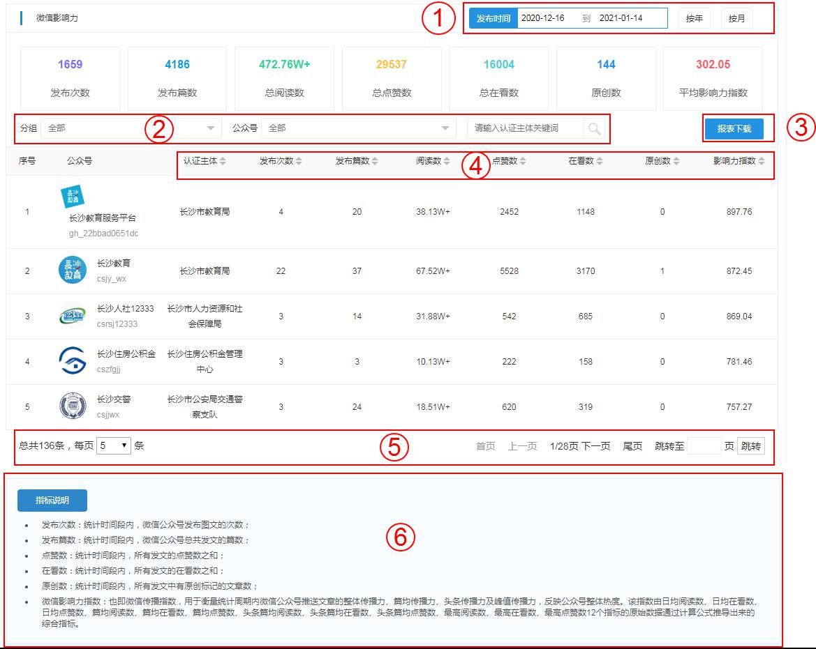具体操作基本同“影响力榜单”操作,在此不复述。
